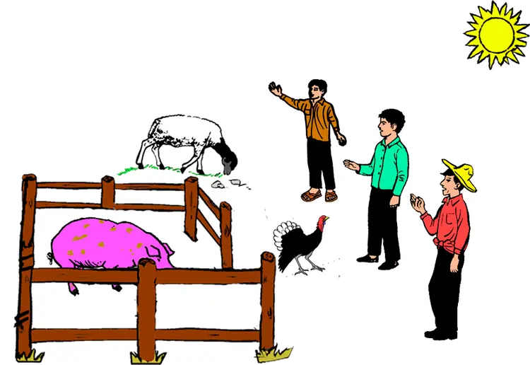 por eso los animales hicieron un plan. Y el borrego le dijo al guajolote: