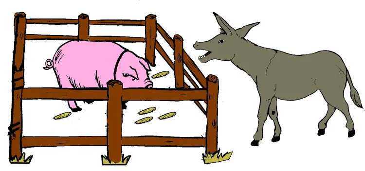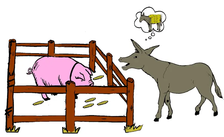 Hubo una vez un burro que no le habían dado de comer y le dio mucha hambre.